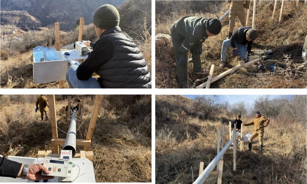 The Pskem Valley is a remote mountainous region exposed to frequent mudflows and landslides. Within the GLOFCA project, activities are being carried out at pilot sites in the villages of Pskem and Tepar. In December 2025, five extensometers (landslide monitoring devices) were installed at two of the most landslide-prone locations, Khirabulak and Takayangak, to strengthen local monitoring capacity.