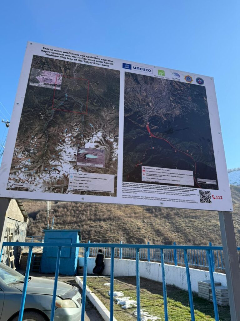 В Алматинской области проект «Снижение уязвимости населения Центрально-азиатского региона от паводков, вызванных прорывом ледниковых озёр, в условиях изменения климата» (GLOFCA), реализуемый ЮНЕСКО при поддержке Адаптационного фонда, завершил установку информационных щитов и карт рисков в бассейнах рек Талгар и Есик — двух пилотных территориях проекта.
